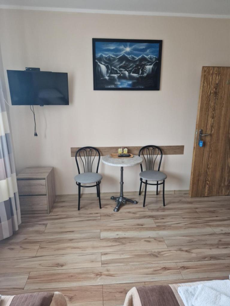 Pokój trzyosobowy. The triple room offers a wardrobe, parquet floors, as well as a private bathroom featuring a walk-in shower. This triple room provides heating and a flat-screen TV. The unit offers 3 beds. Pokój Trzyosobowy - 3 osobowy. Powierzchnia pokoju ok.: 15 mkw. ;