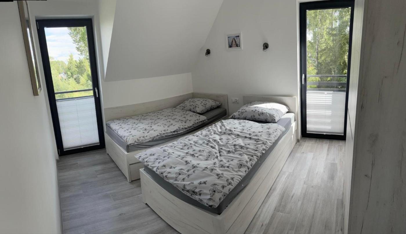 Dom z 2 sypialniami. This holiday home comes with 1 living room, 2 separate bedrooms and 2 bathrooms with a shower and a hairdryer. Meals can be prepared in the kitchen, which features a stovetop, a refrigerator, a dishwasher and kitchenware. Boasting a terrace with garden views, this holiday home also features a coffee machine and a flat-screen TV with satellite channels. The unit has 4 beds. Dom wakacyjny - 6 osobowy. Powierzchnia pokoju ok.: 75 mkw.