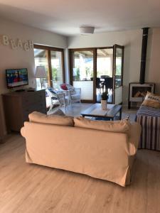 Dom z 3 sypialniami. This holiday homes standout feature is the fireplace. Guests will find a stovetop, a refrigerator, a dishwasher and kitchenware in the well-fitted kitchenette. The holiday home also has a barbecue. Featuring a terrace with garden views, this holiday home also offers a washing machine and a flat-screen TV. The unit offers 4 beds. Dom wakacyjny - 9 osobowy. Powierzchnia pokoju ok.: 100 mkw.