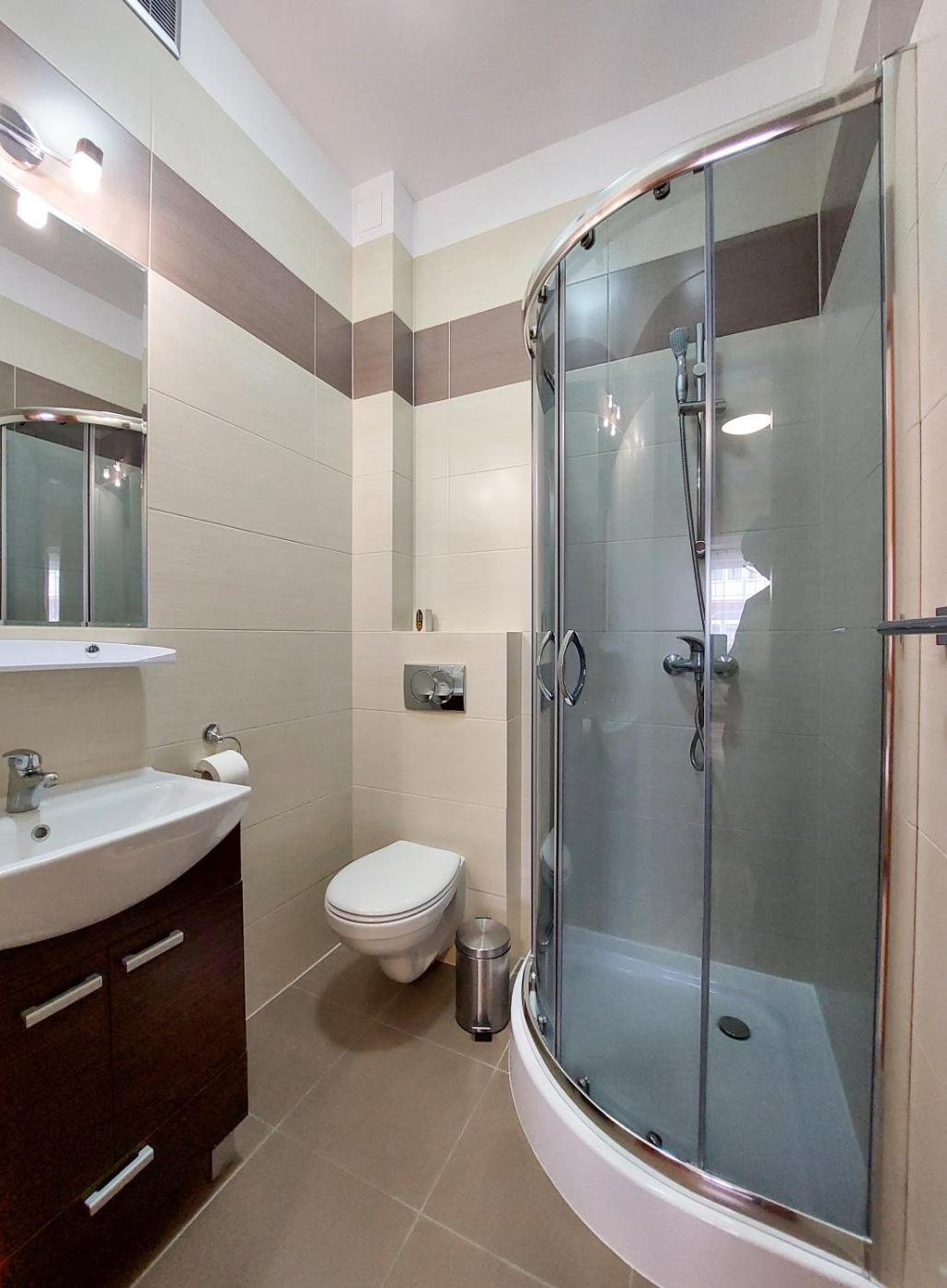 Pokój Dwuosobowy typu Budget. The double room features a wardrobe and an electric kettle, as well as a private bathroom boasting a shower. This double room offers parquet floors and a flat-screen TV. The unit has 1 bed. Pokój Dwuosobowy - 2 osobowy. Powierzchnia pokoju ok.: 12 mkw. ;