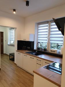 Apartament – parter. Featuring a private entrance, this apartment is comprised of 1 living room, 1 separate bedroom and 1 bathroom with a shower and a hairdryer. The well-fitted kitchen features a stovetop, a refrigerator, a dishwasher and kitchenware. Boasting a terrace with garden views, this apartment also offers a tea and coffee maker and a flat-screen TV with streaming services. The unit offers 2 beds. Apartament - 4 osobowy. Powierzchnia pokoju ok.: 37 mkw. ;