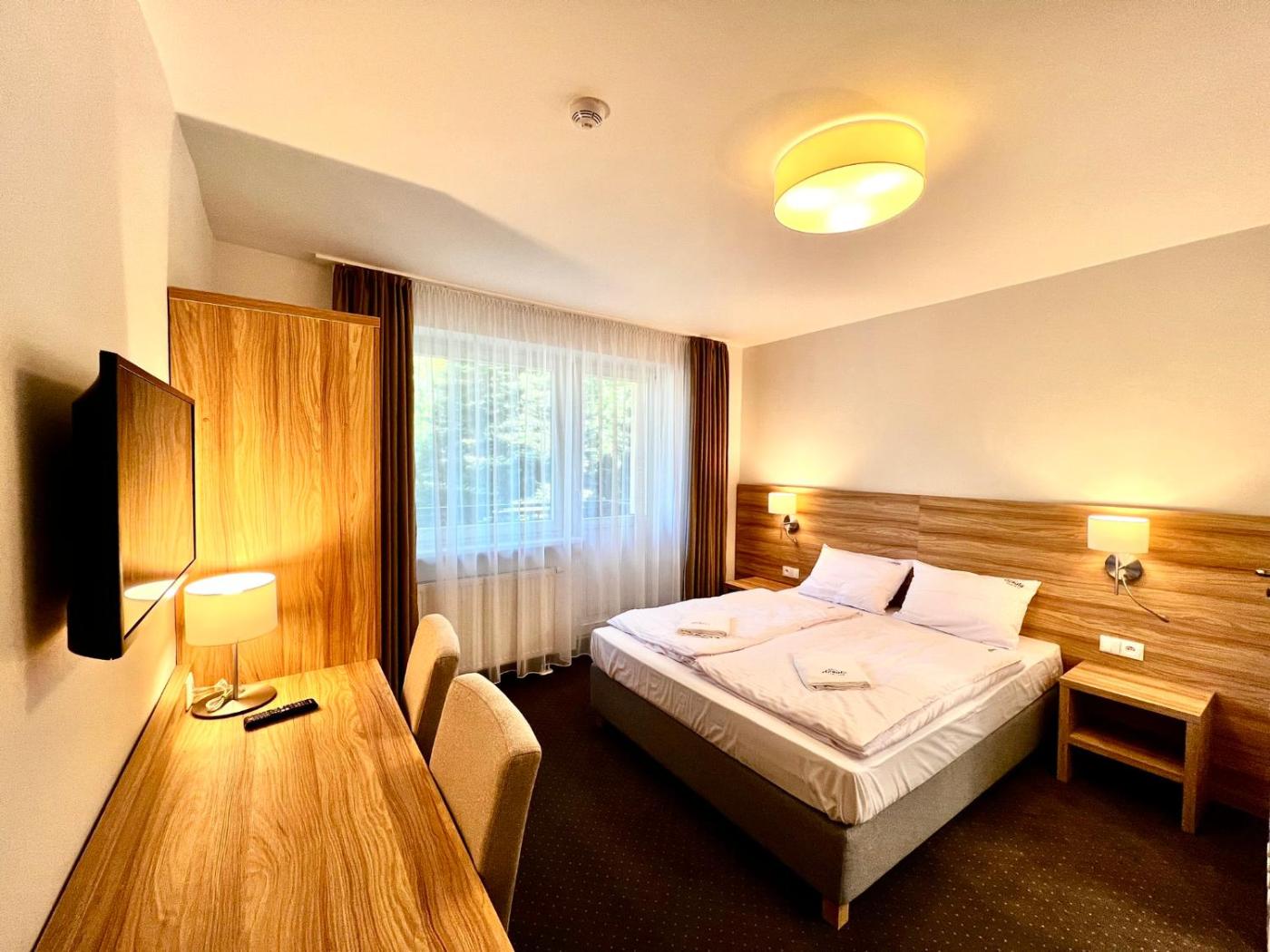 Pokój jednoosobowy. Featuring free toiletries, this single room includes a private bathroom with a shower and a hairdryer. The single room features a flat-screen TV, a wardrobe, a carpeted floor, heating as well as city views. The unit has 1 bed. Pokój Jednoosobowy - 1 osobowy. Powierzchnia pokoju ok.: 11 mkw. ;