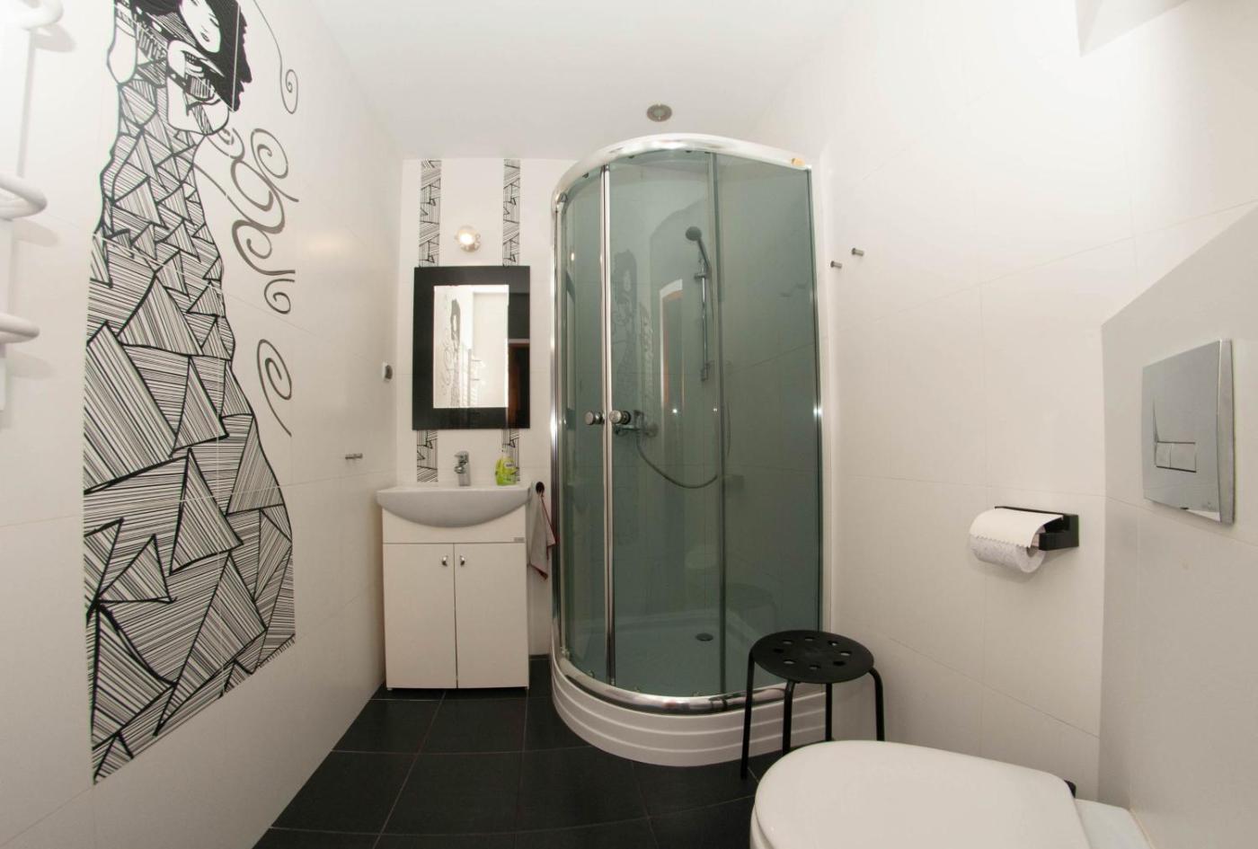 Pokój dwuosobowy z prywatną łazienką. The double room features a wardrobe, an electric kettle, as well as a private bathroom boasting a shower. This double room provides a TV. The unit has 1 bed. Pokój Dwuosobowy - 2 osobowy. Powierzchnia pokoju ok.: 12 mkw. ;