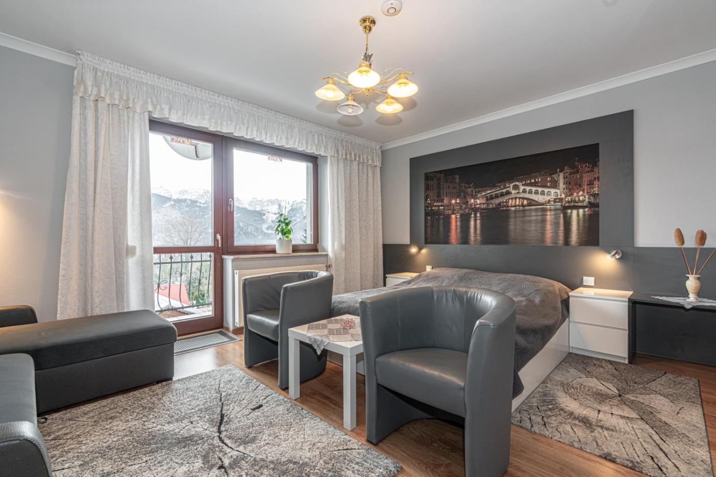 Pokój jednoosobowy typu Standard. The single room offers parquet floors, heating, as well as a private bathroom featuring a shower and a hairdryer. The single room provides a flat-screen TV with cable channels, soundproof walls, a seating area, a wardrobe as well as mountain views. The unit offers 1 bed. Pokój Jednoosobowy - 1 osobowy. Powierzchnia pokoju ok.: 11 mkw. ;