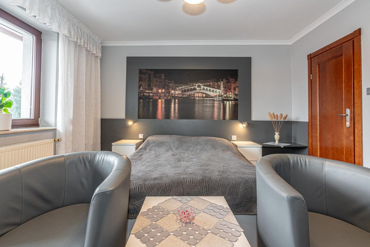 Wszystkie opcje zakwaterowania wyposażono w telewizor z płaskim ekranem z dostępem do kanałów satelitarnych. W każdej opcji do dyspozycji Gości jest też część wypoczynkowa oraz prywatna łazienka z suszarką do włosów i prysznicem.
