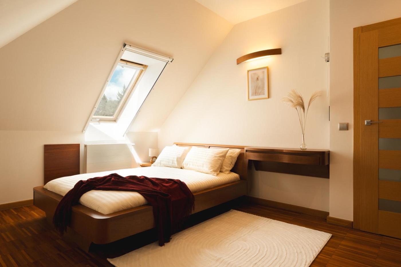 Willa. This villa boasts a hot tub, spa bath and sauna. Guests will find a stovetop, a refrigerator, a dishwasher and kitchenware in the fully equipped kitchen. The villa also offers a barbecue. The spacious villa provides a washing machine, a tea and coffee maker, a terrace with garden views as well as a shared bathroom featuring a shower. The unit offers 5 beds. Willa - 9 osobowy. Powierzchnia pokoju ok.: 325 mkw.