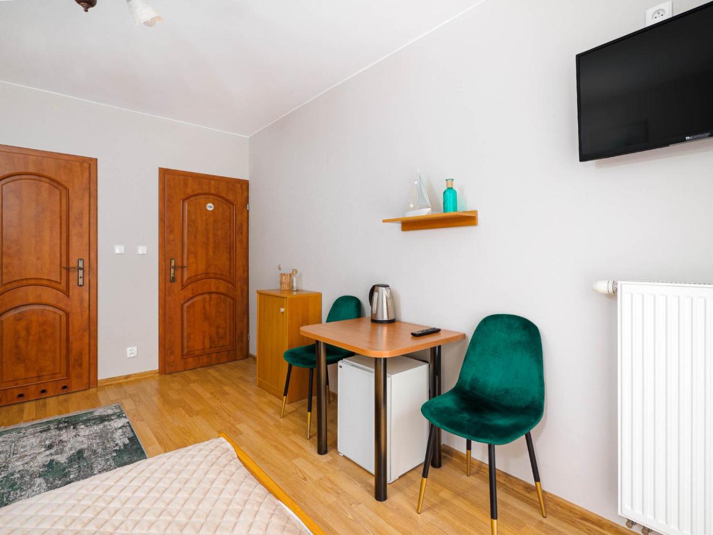 Pokój Czteroosobowy. The quadruple room offers an electric kettle, a sofa, as well as a private bathroom featuring a shower. This quadruple room features heating and a flat-screen TV. The unit offers 2 beds. Pokój Czteroosobowy - 4 osobowy. Powierzchnia pokoju ok.: 23 mkw. ;
