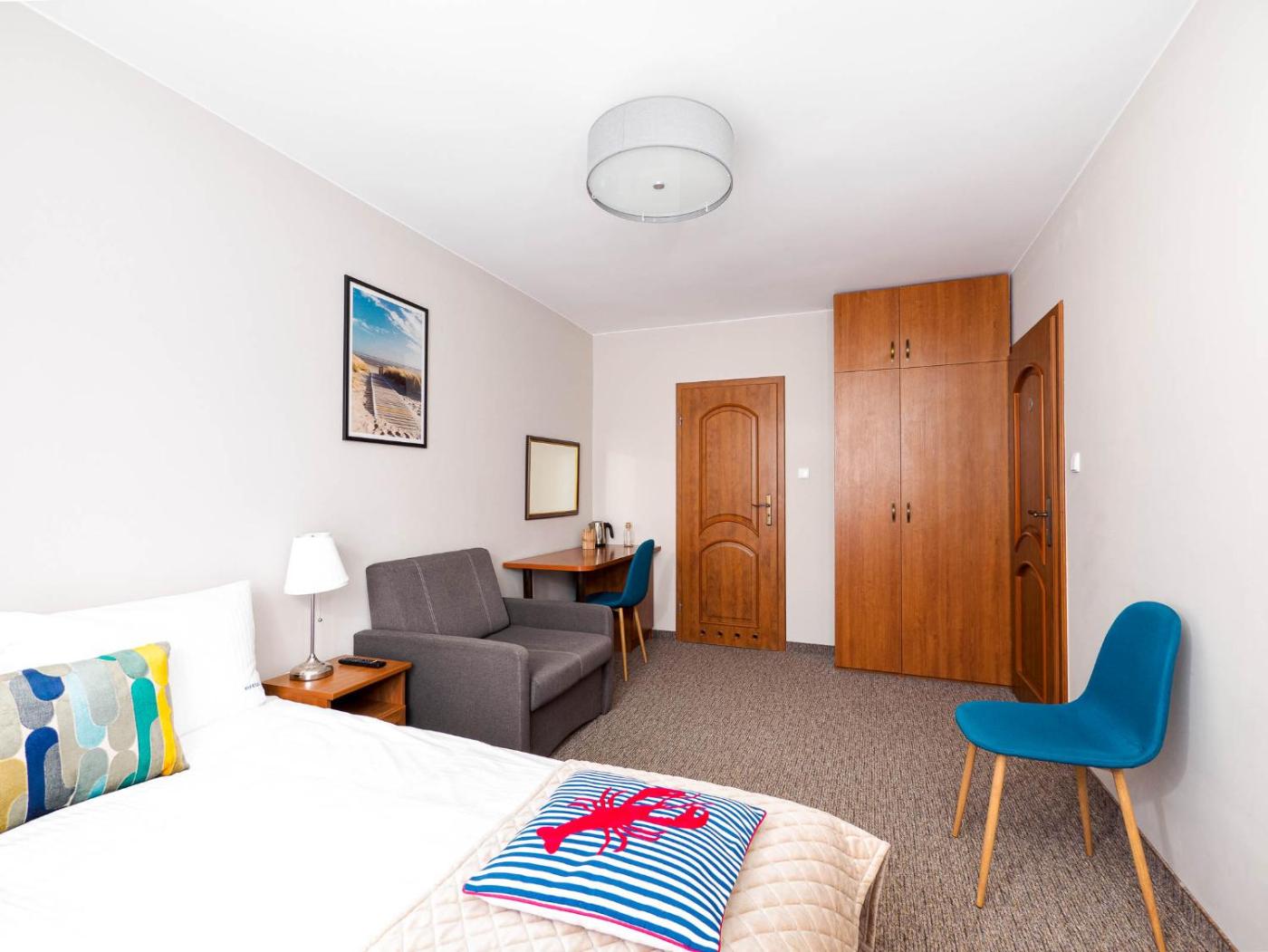 Pokój Dwuosobowy z balkonem. This double room features a private bathroom, an electric kettle, heating as well as a balcony. The unit offers 1 bed. Pokój Dwuosobowy - 1 osobowy. Powierzchnia pokoju ok.: 17 mkw.