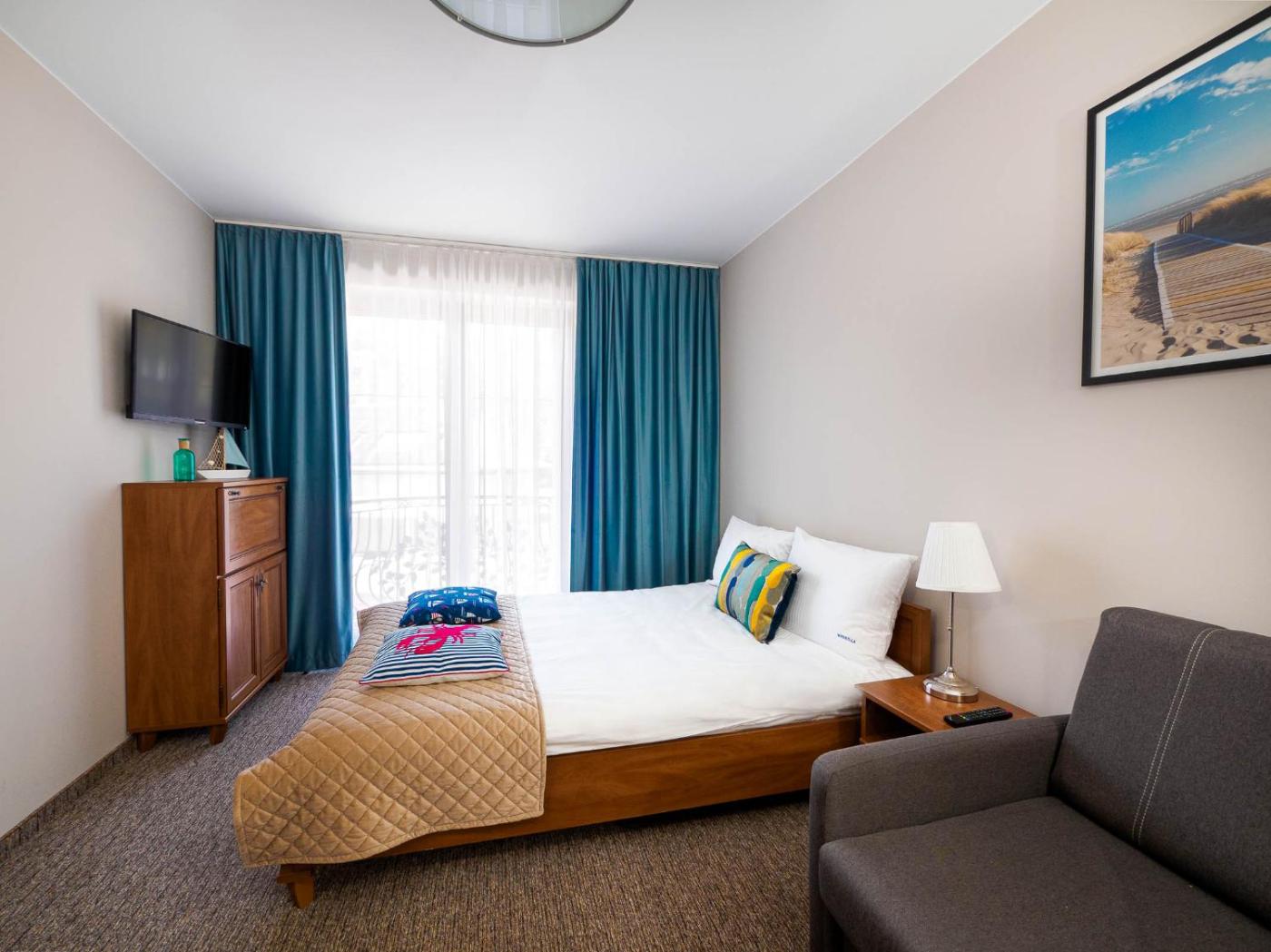 Pokój Czteroosobowy z balkonem. This quadruple room has a private bathroom, an electric kettle, a sofa as well as a balcony. The unit has 2 beds. Pokój Czteroosobowy - 4 osobowy. Powierzchnia pokoju ok.: 23 mkw. ;