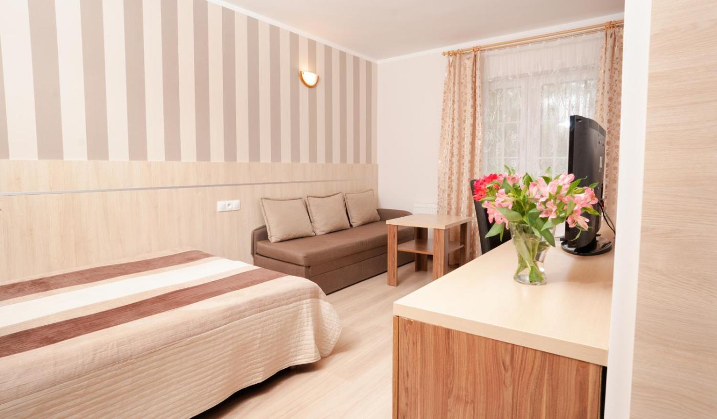Mały pokój Dwuosobowy. The double room provides soundproof walls, a wardrobe, a balcony with a quiet street view as well as a private bathroom featuring a shower. The unit offers 1 bed. Pokój Dwuosobowy - 2 osobowy. Powierzchnia pokoju ok.: 10 mkw.
