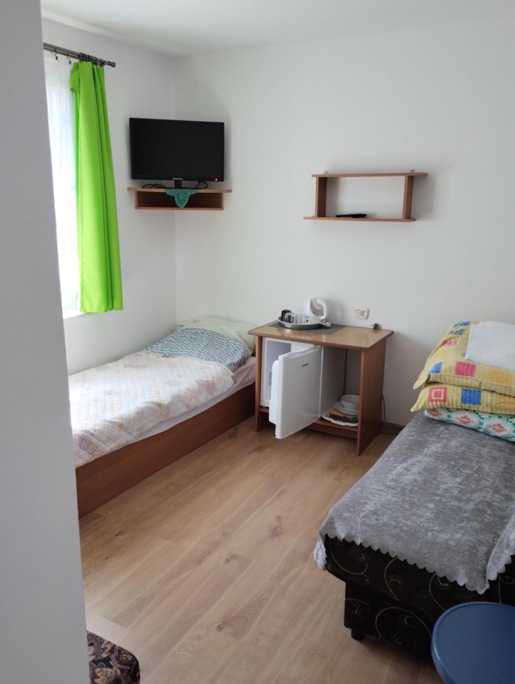 Pokój trzyosobowy. The triple room features a wardrobe and an electric kettle, as well as a private bathroom boasting a shower. This triple room offers a flat-screen TV. The unit has 3 beds. Pokój Trzyosobowy - 4 osobowy. Powierzchnia pokoju ok.: 8 mkw. ;