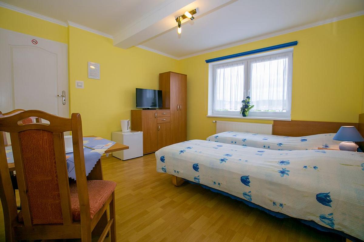 Pokój czteroosobowy z prywatną łazienką. Ten pokój czteroosobowy oferuje telewizor z płaskim ekranem i dostępem do kanałów kablowych, łazienkę oraz taras z widokiem na ogród. Do dyspozycji gości są 3 łóżka. Pokój Czteroosobowy - 4 osobowy. Powierzchnia pokoju ok.: 17 mkw. ;
