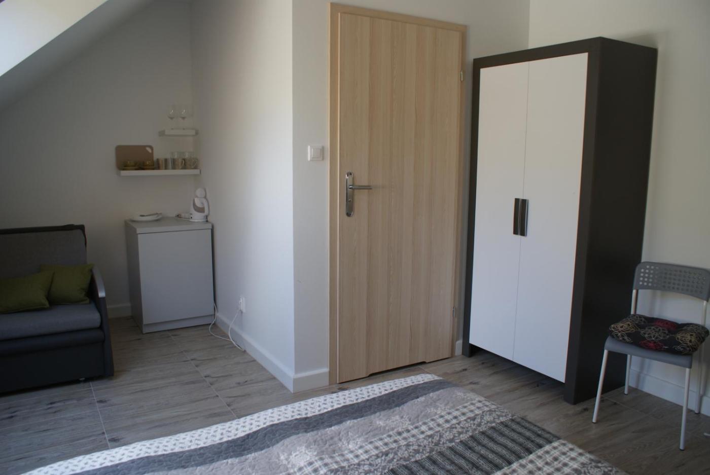 Pokój Trzyosobowy typu Standard. This triple room features a private bathroom, a wardrobe, an electric kettle as well as a terrace. The unit offers 2 beds. Pokój Trzyosobowy - 3 osobowy. Powierzchnia pokoju ok.: 16 mkw. ;