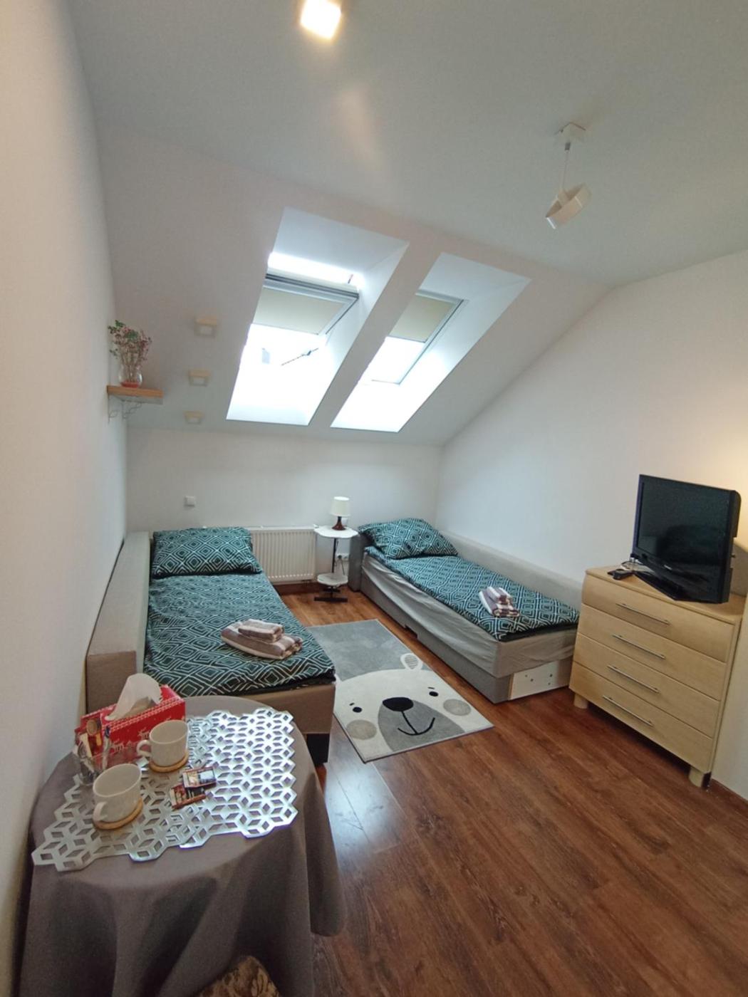 Pokój z 2 łóżkami pojedynczymi i balkonem. Providing free toiletries, this twin room includes a shared bathroom with a shower, a hairdryer and slippers. This twin room features a wardrobe, an electric kettle, a flat-screen TV and a balcony. The unit offers 2 beds. Pokój z 2 łóżkami pojedynczymi - 2 osobowy. Powierzchnia pokoju ok.: 15 mkw.