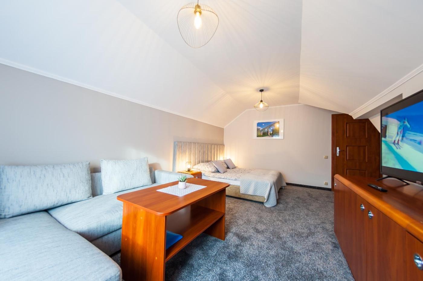 Pokój Trzyosobowy z prywatną łazienką. The triple room offers a wardrobe, an electric kettle, as well as a private bathroom boasting a shower and a hairdryer. This triple room has a sofa, heating, a flat-screen TV and garden views. The unit has 2 beds. Pokój Trzyosobowy - 3 osobowy. Powierzchnia pokoju ok.: 20 mkw. ;