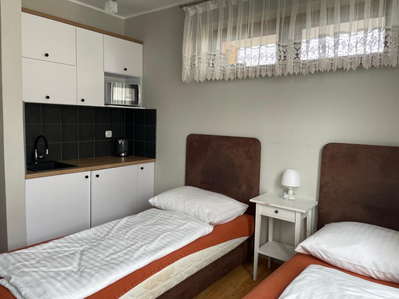 Pokój z 2 łóżkami pojedynczymi i balkonem. Guests will find a refrigerator, kitchenware, a microwave and an electric kettle in the well-fitted kitchenette. The twin room also provides guests with a barbecue. This twin room includes a flat-screen TV with cable channels, a private bathroom as well as a balcony with garden views. The unit offers 2 beds. Pokój z 2 łóżkami pojedynczymi - 3 osobowy. Powierzchnia pokoju ok.: 18 mkw. ;
