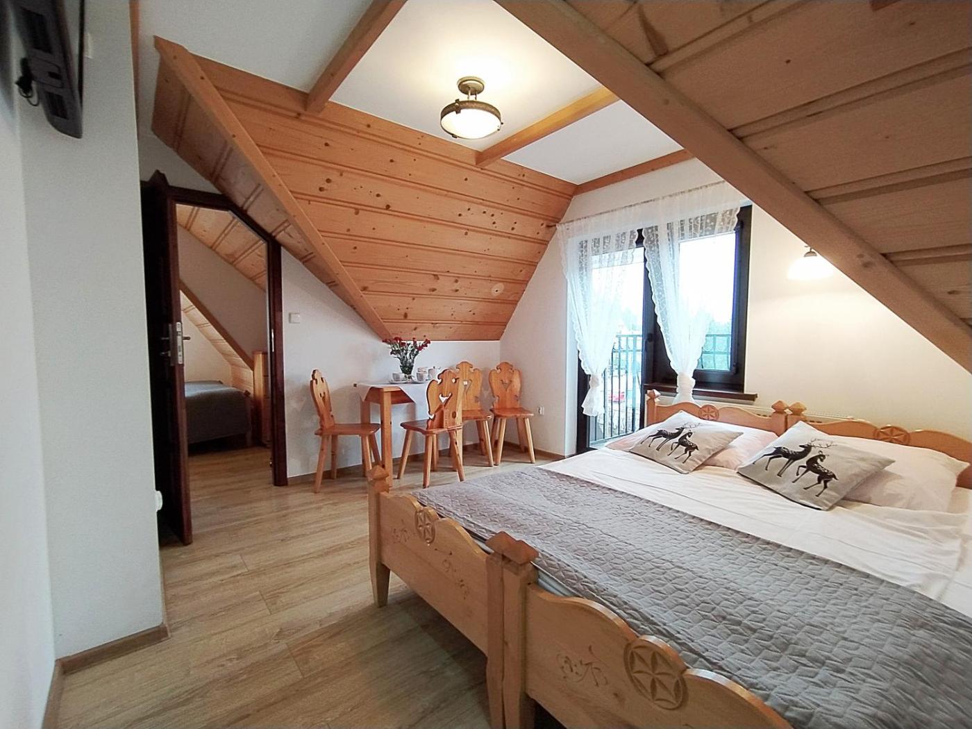 Pokój czteroosobowy z widokiem na góry. The quadruple room provides a wardrobe, an electric kettle, a terrace with mountain views as well as a private bathroom featuring a shower. The unit offers 2 beds. Pokój Czteroosobowy - 4 osobowy. Powierzchnia pokoju ok.: 20 mkw.