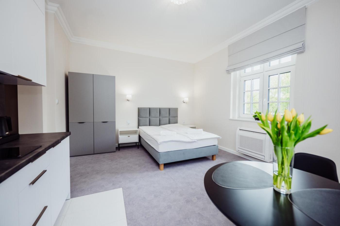 Studio typu Deluxe. The studio offers a tea and coffee maker, a dining area, as well as a private bathroom boasting a shower and a hairdryer. Meals can be prepared in the kitchenette, which has a stovetop, a refrigerator, kitchenware and a microwave. This studio has a wardrobe, heating, a flat-screen TV and city views. The unit has 1 bed. Studio - 2 osobowy. Powierzchnia pokoju ok.: 35 mkw. ;